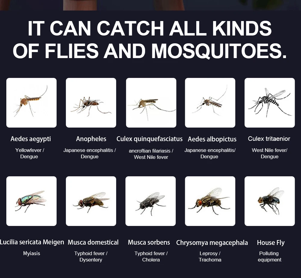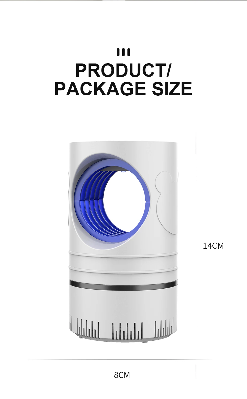 ✅Centrifugal pressure. Prevents escape:Once the mosquito is sucked into the trap grid, it is difficult to escape the strong vortex generated by the fan, which has been pressed into the bottom of the mosquito disc by the cyclone, making it dehydrated and air-dried to death.