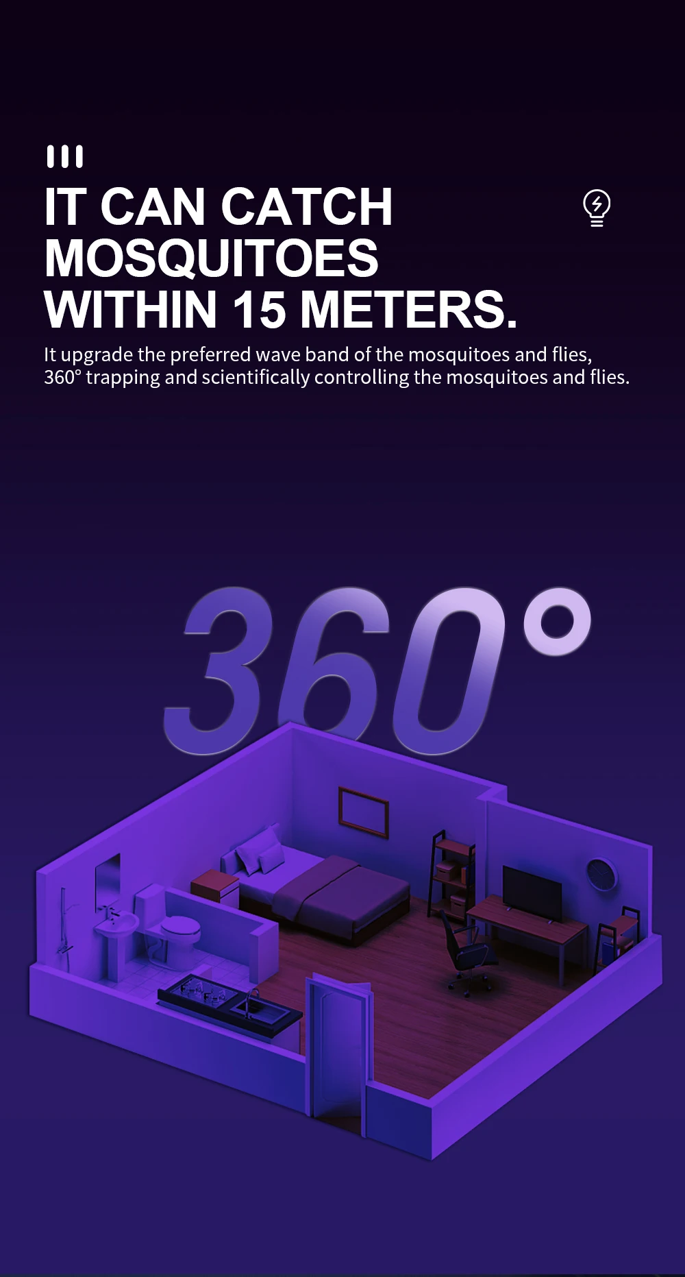 ✅light:Using mosquito favorite 368nm ultraviolet light mosquito trap lamp,360° light, and photocatalytic reaction produced by photocatalyst, release carbon dioxide and air flow to simulate the carbon dioxide damp atmosphere emitted by human body. Attracts mosquitoes in any direction.